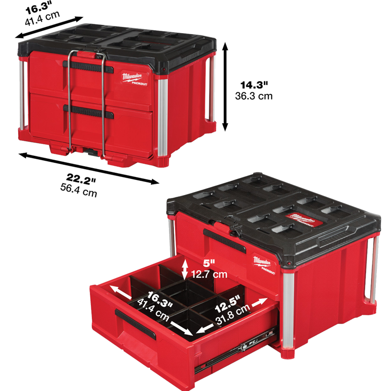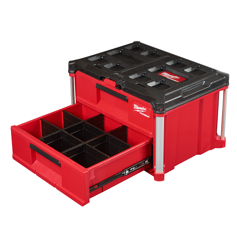 Caja de herramientas con 2 cajones PACKOUT posee una capacidad de peso de 50 libras y una barra de seguridad de bloqueo, lo cual le permite cerrar los cajones con candado, para mantenerlos cerrados con seguridad durante el transporte. Esta caja de herramientas portátil con cajones se fabrica con polímeros resistentes a los impactos, rieles de cojinetes de bolas completamente metálicos y esquinas reforzadas de metal para obtener la máxima durabilidad en el lugar de trabajo. Además, la caja de herramientas con 2 cajones le permite personalizar la disposición de los cajones mediante divisores de ajuste rápido (incluye 1 juego de divisores).